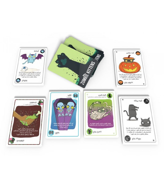 گربه زامبي يک بازي کاملا مستقل و جديد است که اخيرا منتشر شده ، در بازي گربه زامبي فقط بايد سعي کنيد که منفجر نشويد و تا پايان بازي زنده بمانيد . اگر منفجر نشويد، مي بريد ولي نکته مهم اينجا است که اگر منفجر شويد باز هم ممکنه ببريد چون بعد از منفجر شدن ميتونيد به عنوان زامبي قويتر از قبل به بازي برگرديد ولي به شرط اينکه يکي از بازيکنان مرده ي ديگر را نيز با خودتان زنده کنيد و به بازي برگردانيد . در بازي گربه زامبي ابتدا کارت هاي گربه انفجاري و کارت هاي گربه زامبي ، که مي تواند شما را به همراه يک بازيکن مرده ديگر زنده کند ، را از بازي خارج مي کنيد. سپس تمام کارت ها را بر مي زنيد و به هر بازيکن هفت کارت به اضافه يک کارت گربه زامبي مي دهيد. کارت هاي گربه انفجاري را به تعداد يکي کمتر از بازيکنان، داخل دسته کارت ها گذاشته و بر مي زنيد که تشکيل دک کارت ها را مي دهد. دک کارت ها را در ميان ميز بازي گذاشته و هم اکنون بازي آغاز مي شود. هر کسي در نوبت خودش هر تعداد کارت که مي خواهد مي تواند از دستش بازي کند ولي نکته مهم اين است که در پايان نوبت، حتما بايد يک کارت از دک کارت هاي بازي بکشد. ممکن است اين کارت، يک کارت گربه انفجاري باشد و شايد هم خوش شانس باشيد و نباشد. ولي نگران نباشيد، حتي اگر گربه انفجاري باشد، شما هنوز يک کارت گربه زامبي داريد اگر هم نداشتيد پس از انفجار به عنوان زامبي داخل بازي خواهيد بود (فقط کارت هاي مخصوص زامبي هارا بازي ميکنيد و کارت هم نميکشيد) تا اين که اگر خوش شانس باشيد، يک نفر شما را با کارت گربه زامبي اش به زندگي بازگرداند تا بتوانيد شانس خود را براي زنده ماندن و برنده بازي شدن امتحان کنيد . در اين بازي آخرين بازيکن زنده برنده بازي ميباشد.
